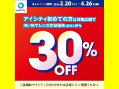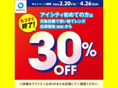 対象店舗で使い捨てレンズが店頭価格(税抜)から30%OFF!