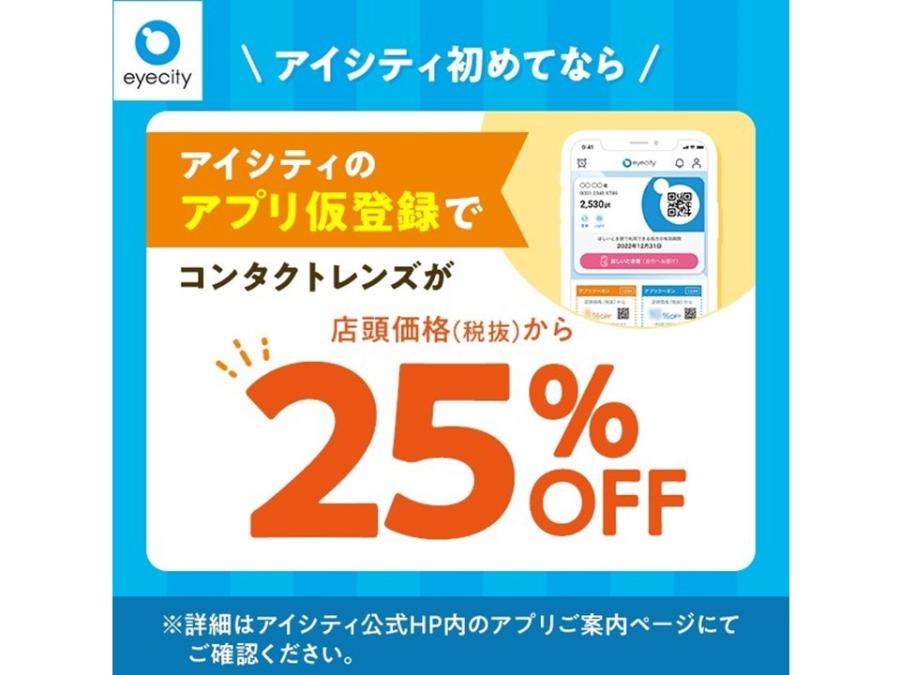 アプリ仮登録でコンタクトレンズが店頭価格(税抜)から25%OFF!