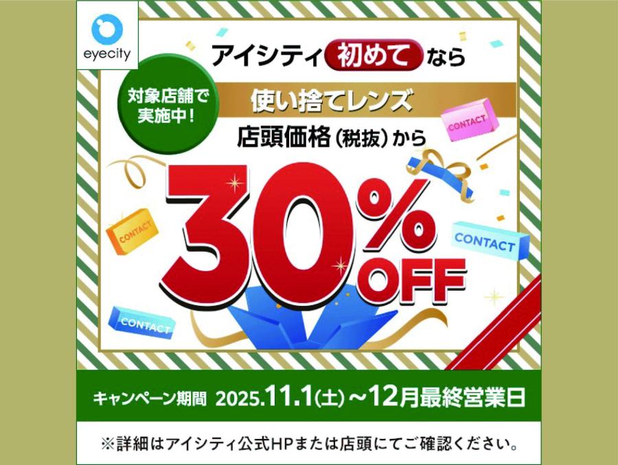 対象店舗で実施中!使い捨てレンズが店頭価格(税抜)から30%OFF!